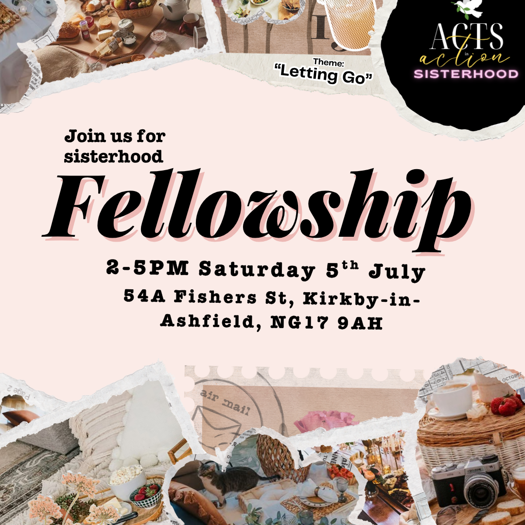 💕 Join us this Saturday 5th July for our Sisterhood Fellowship 👭 with our theme focusing on “Letting Go” 🕊️✨